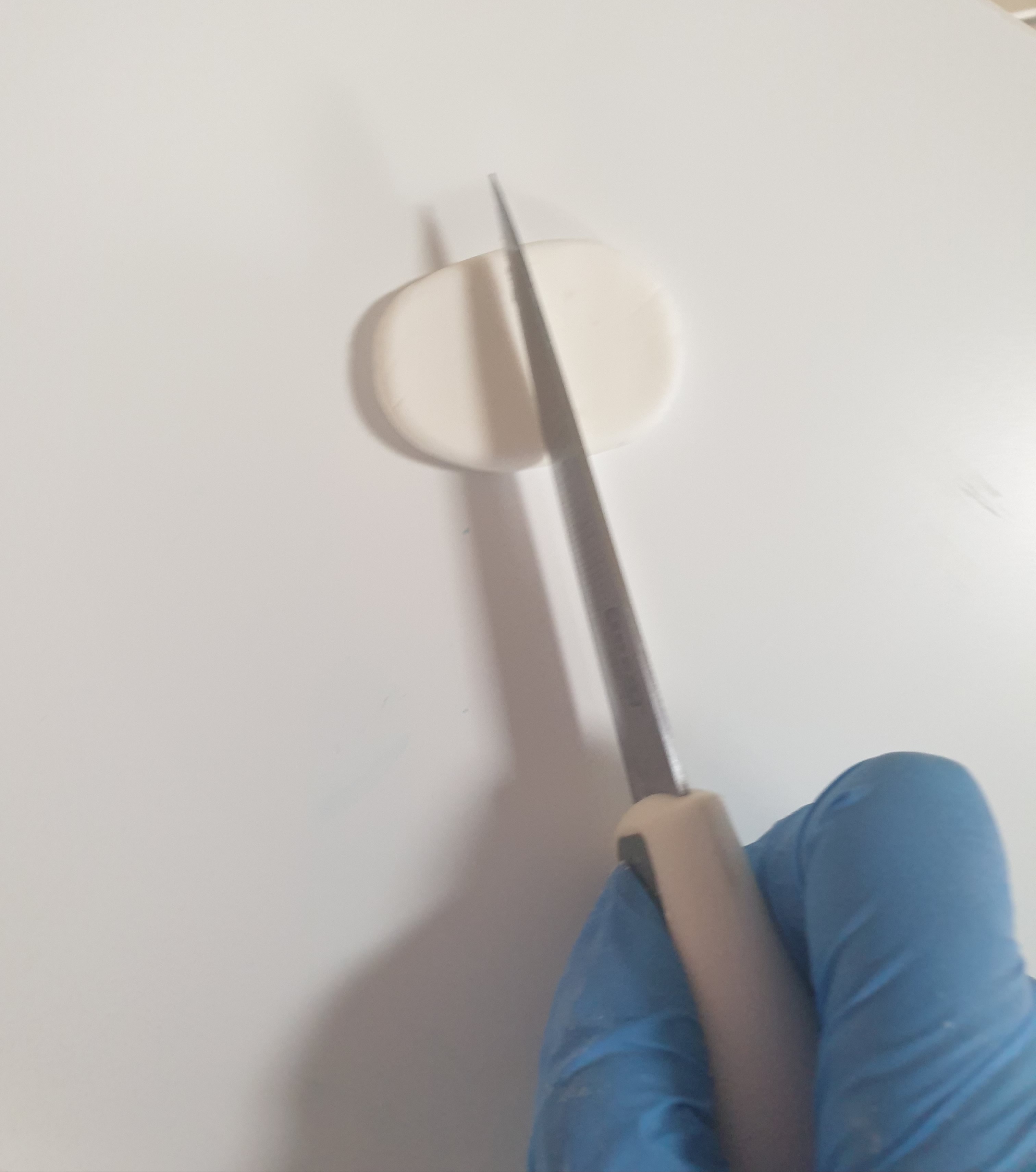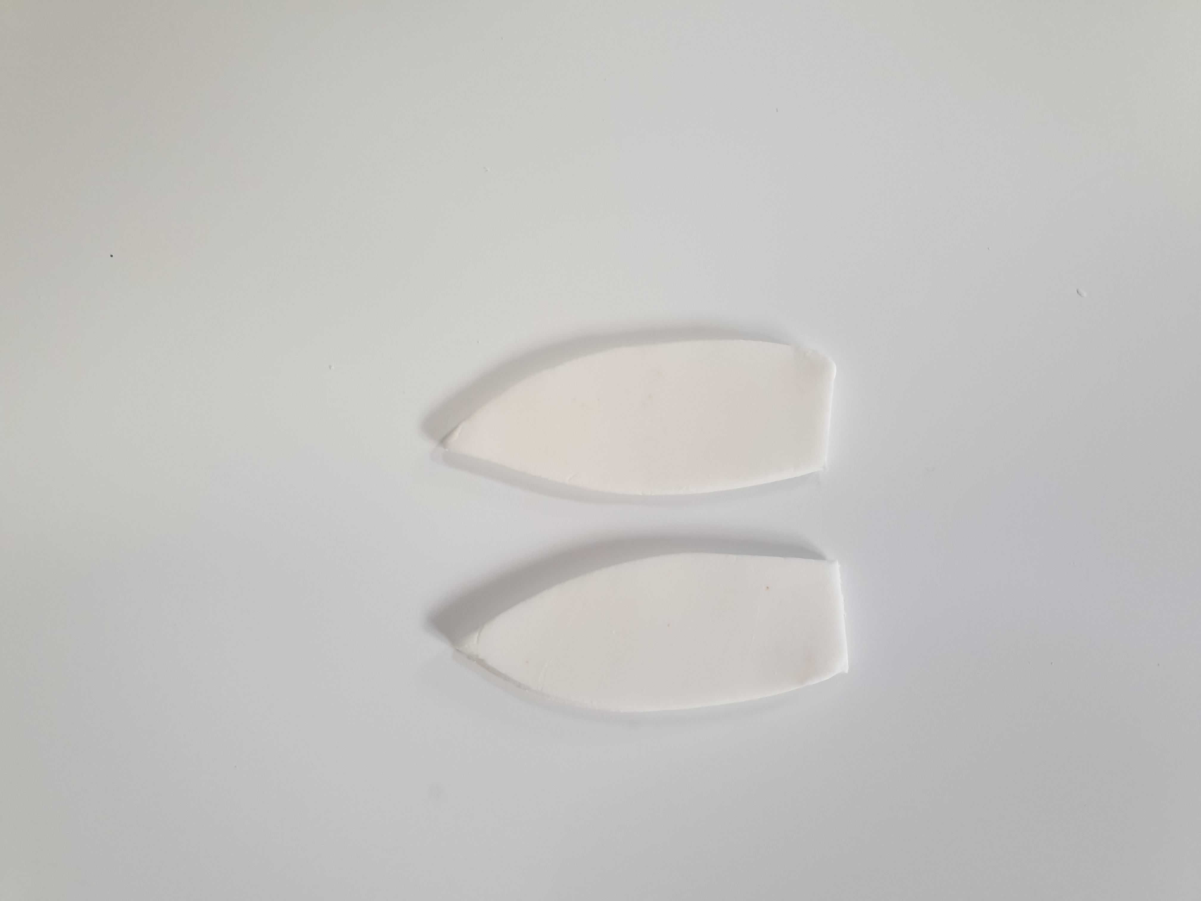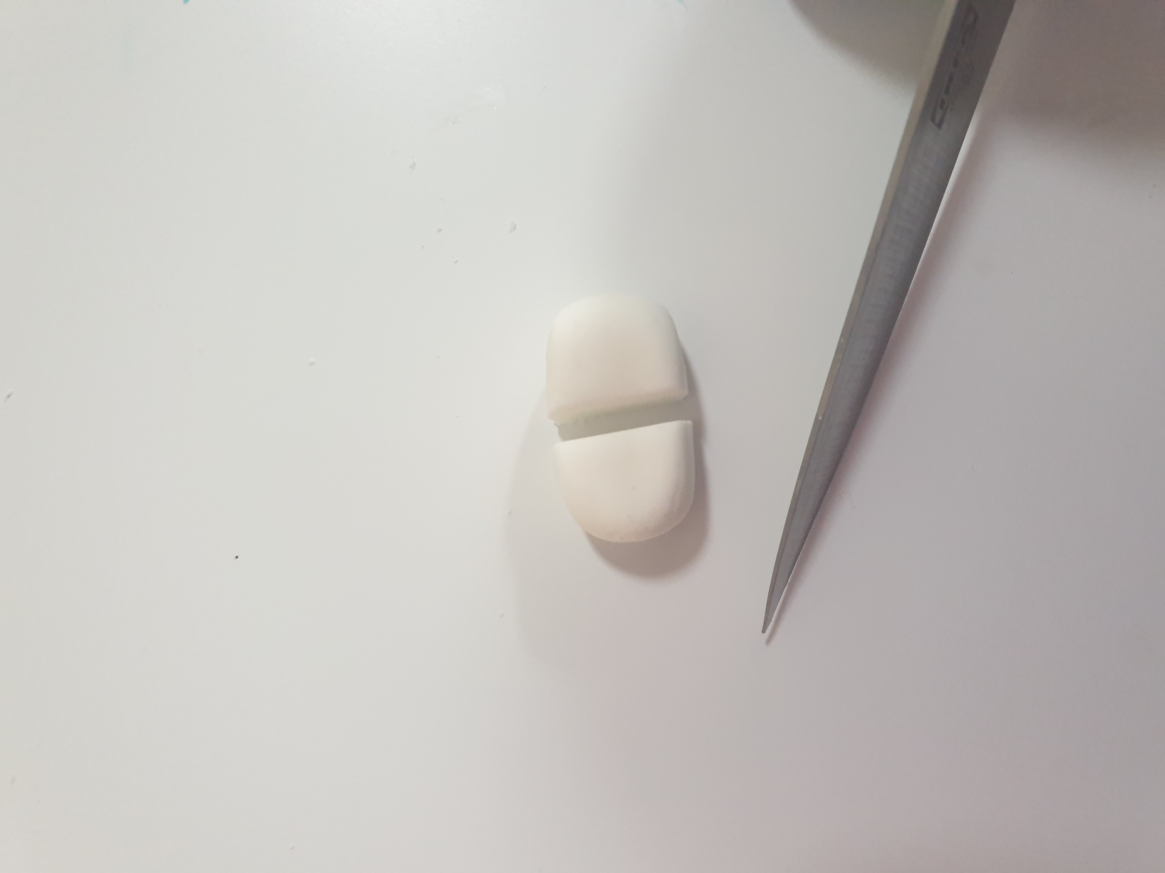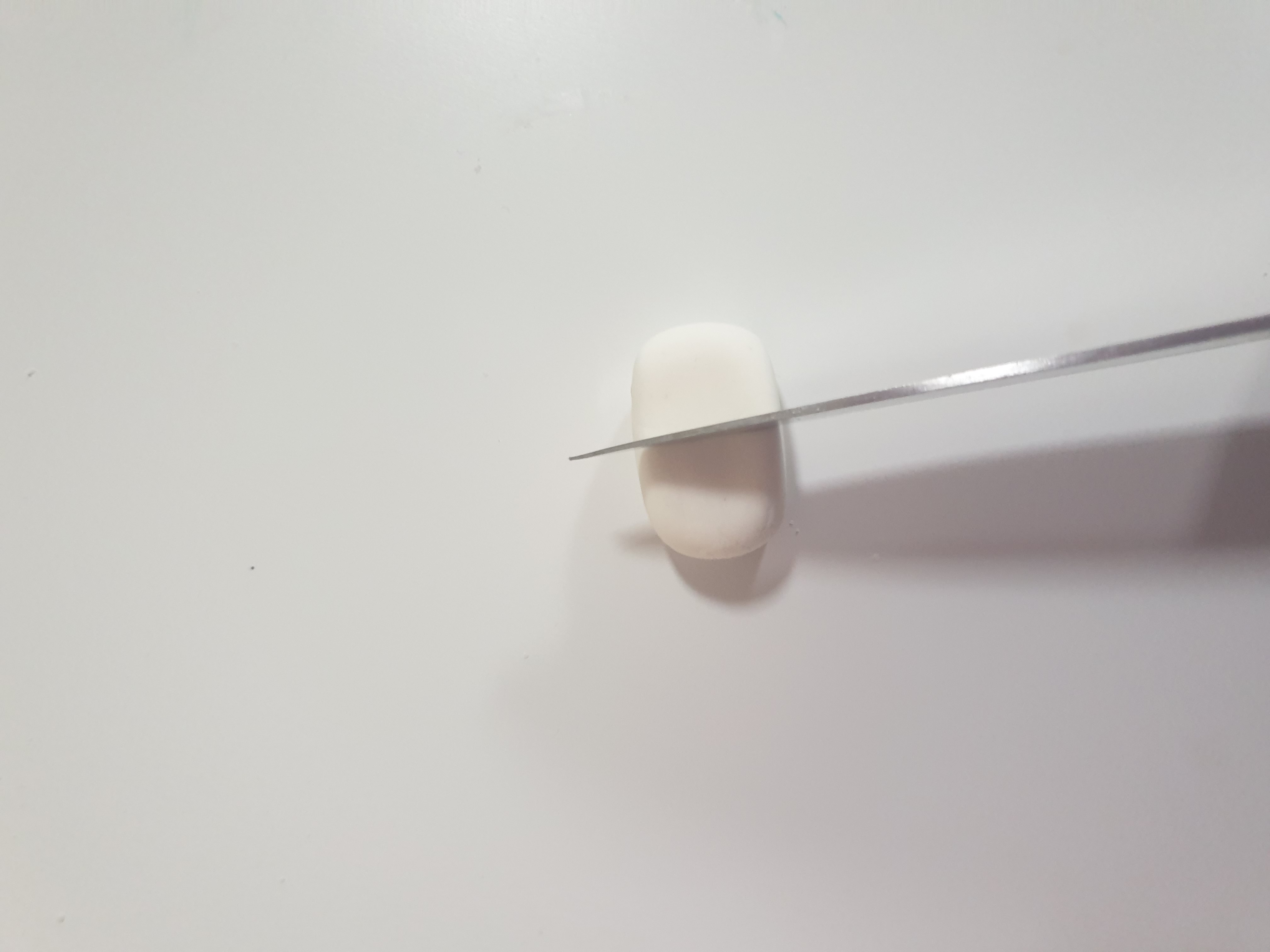 - Cut the white piece of fondant in half with your knife.