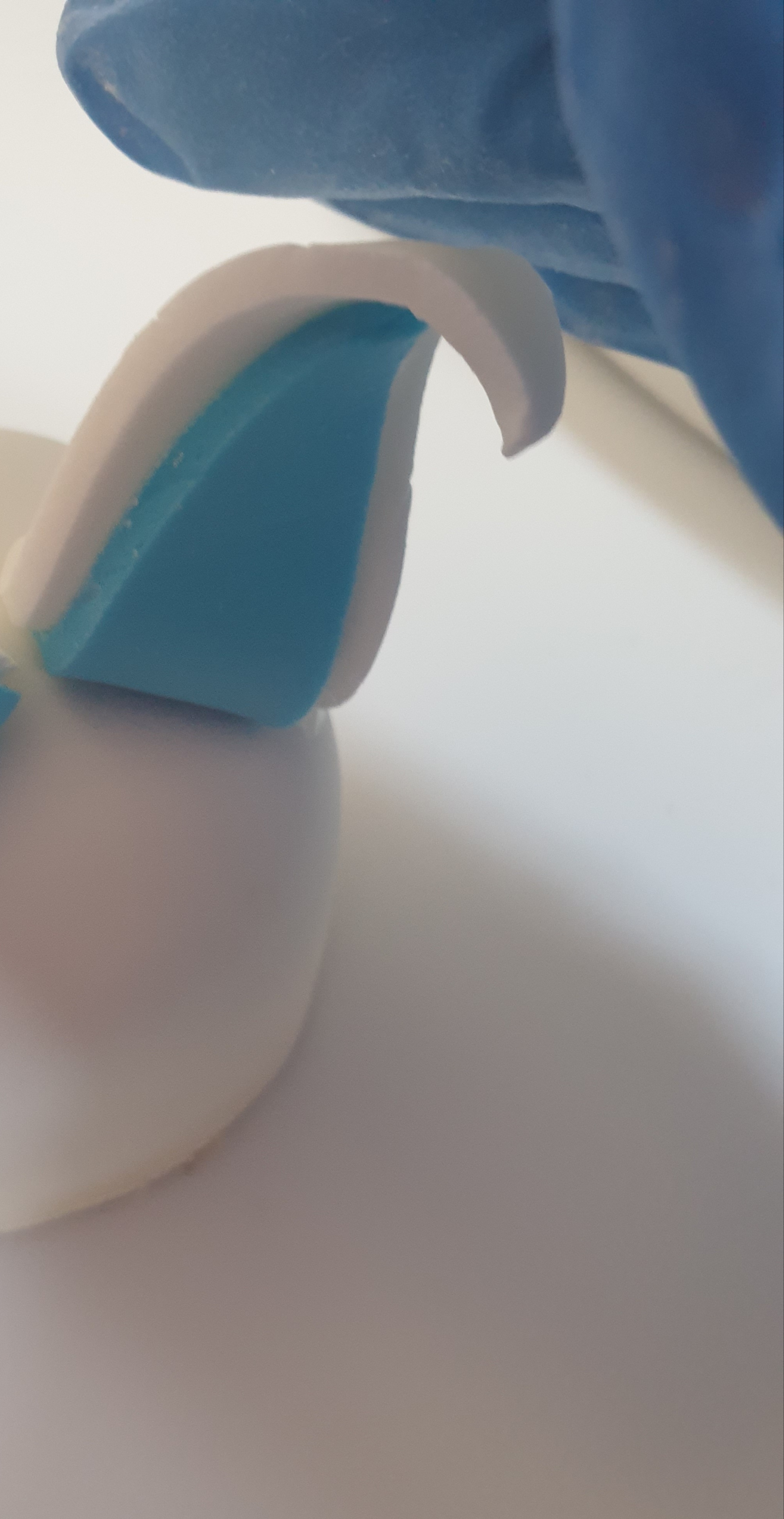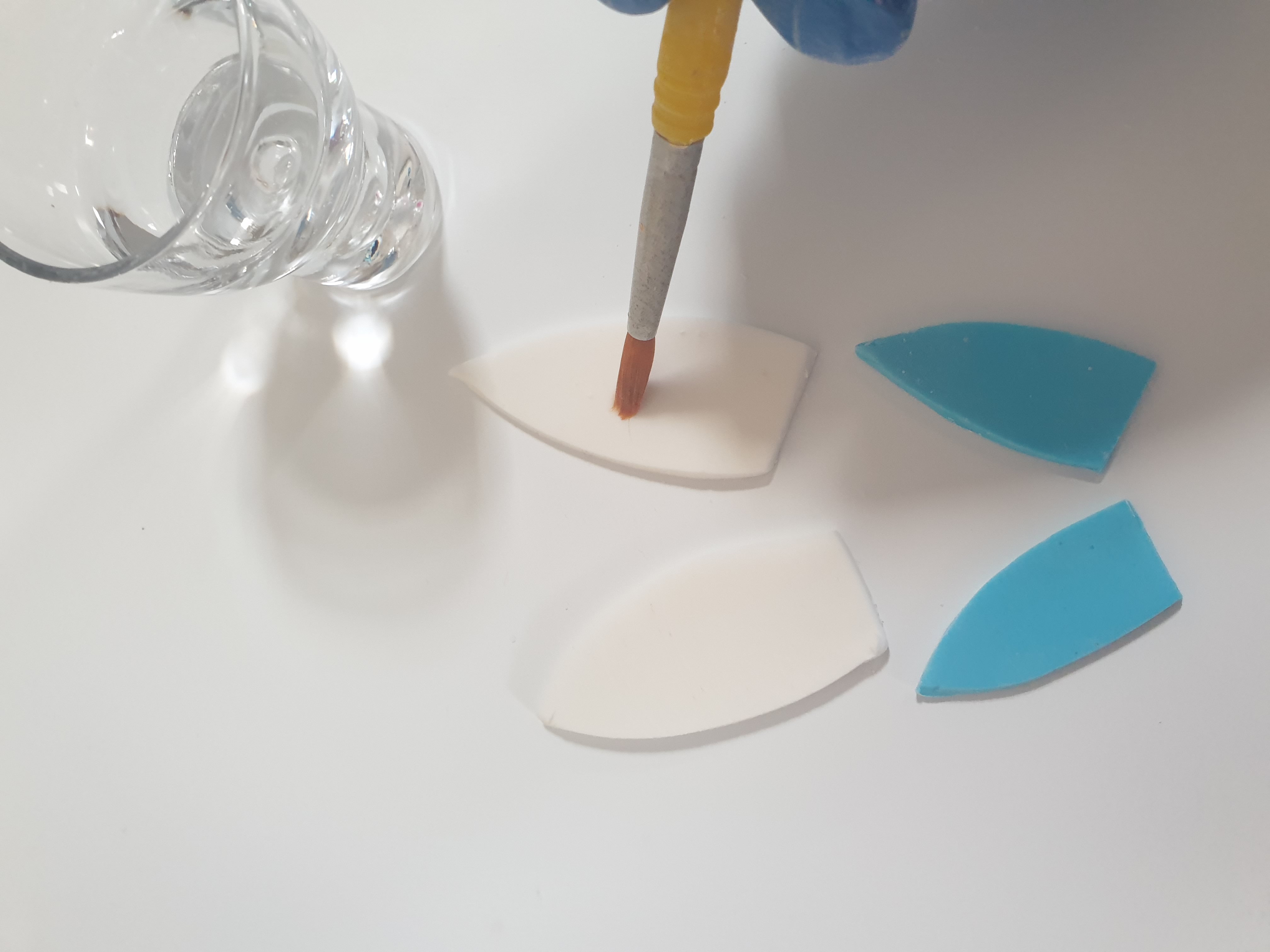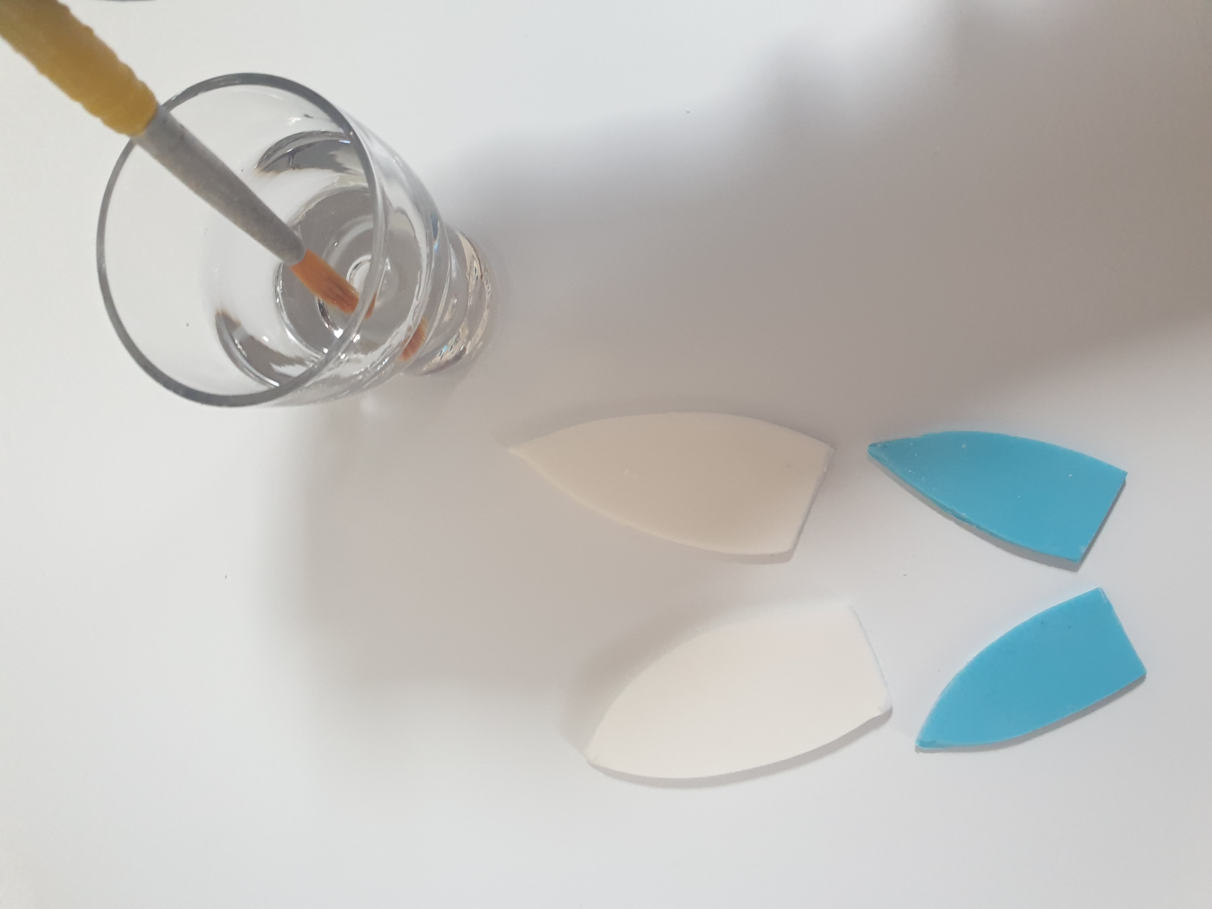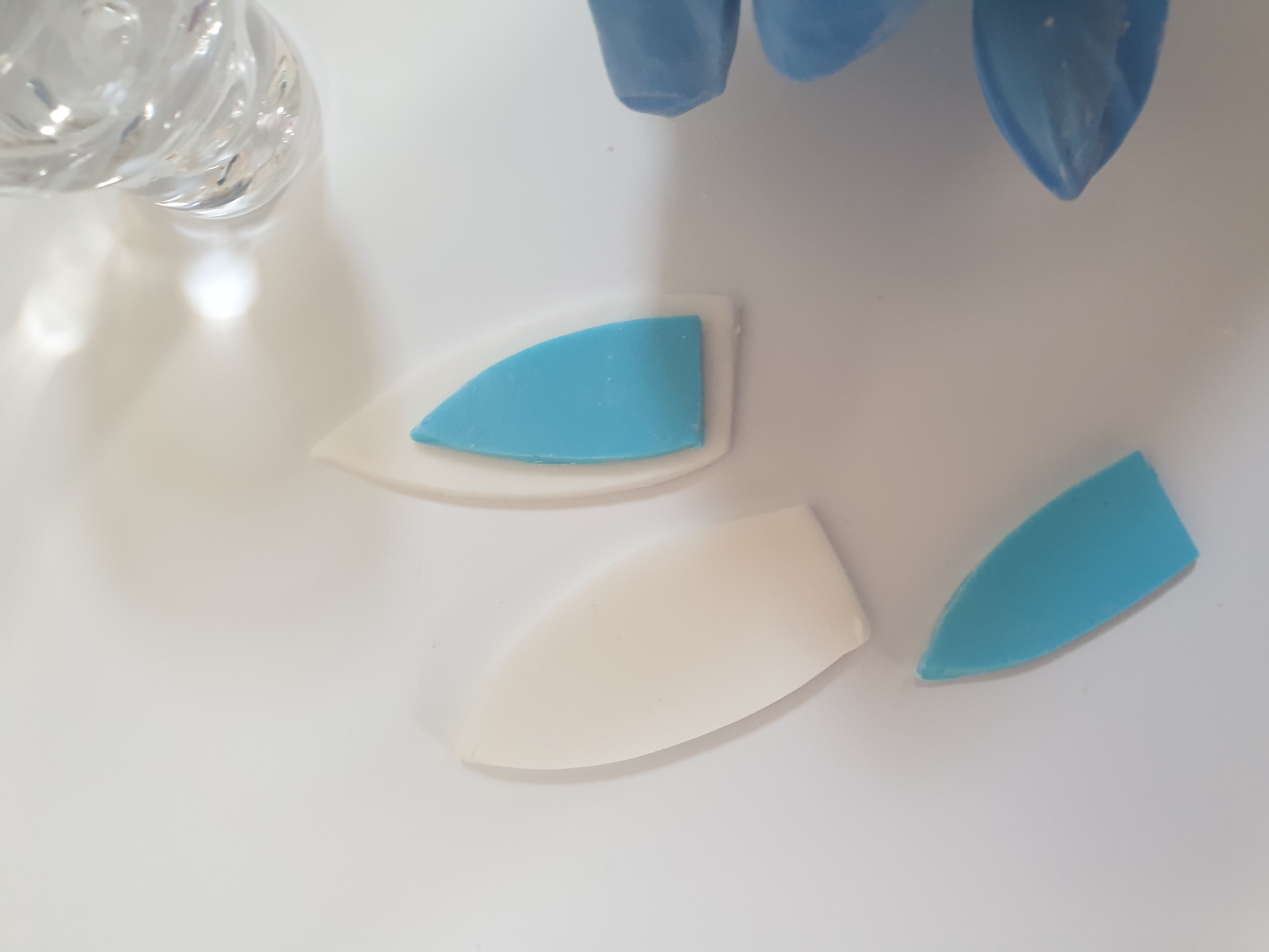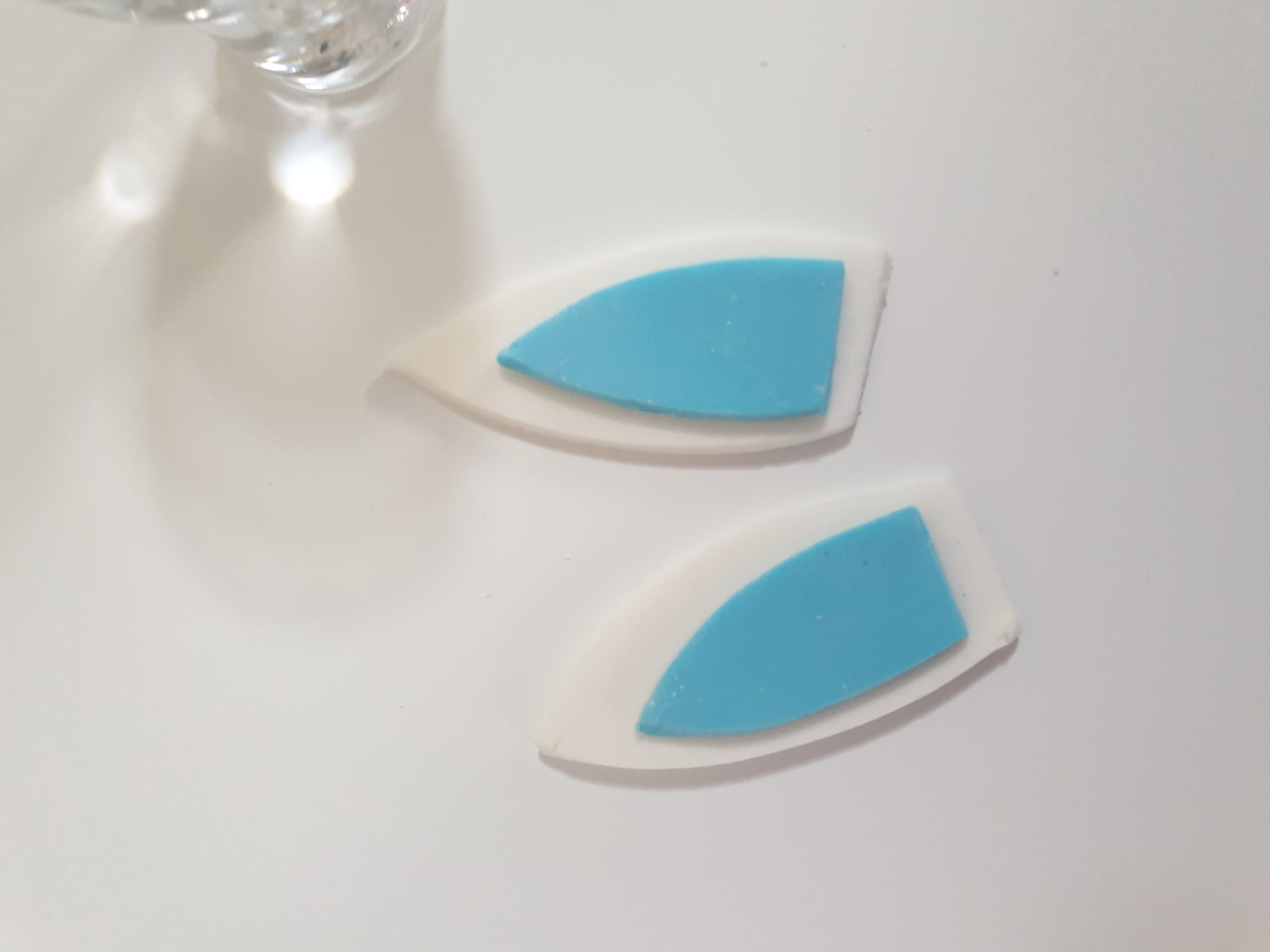 - Place the small blue ear on top of the white and press down gently to secure.