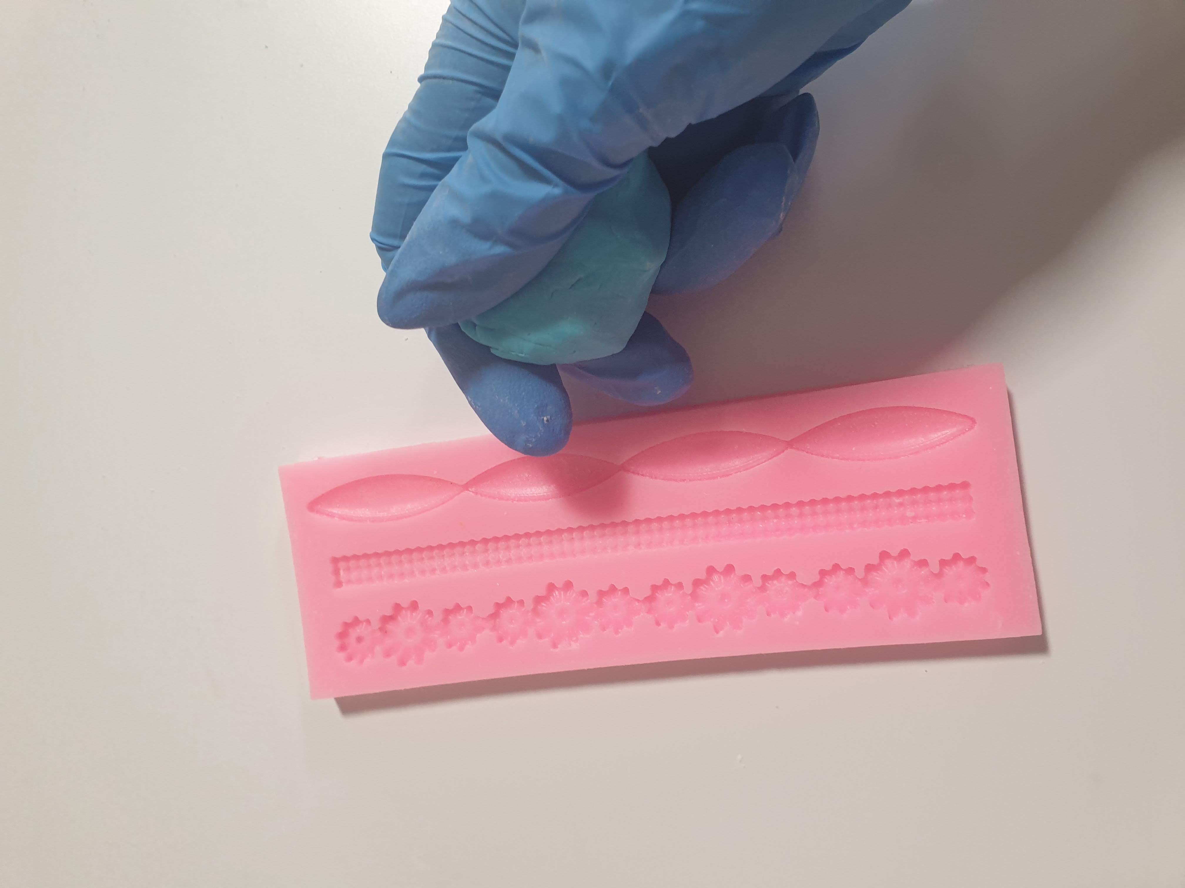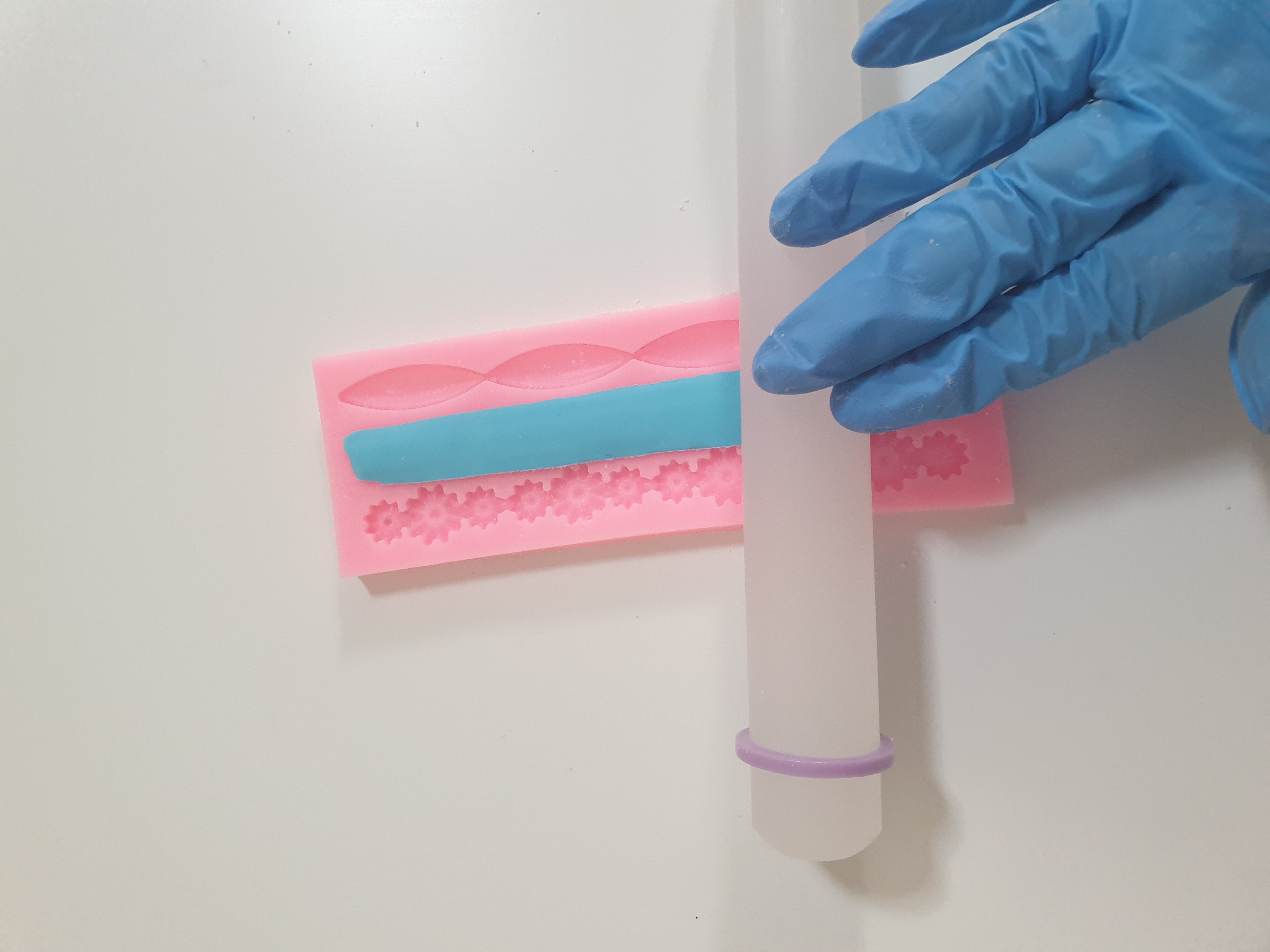 - Take your mould and some blue or pink fondant.