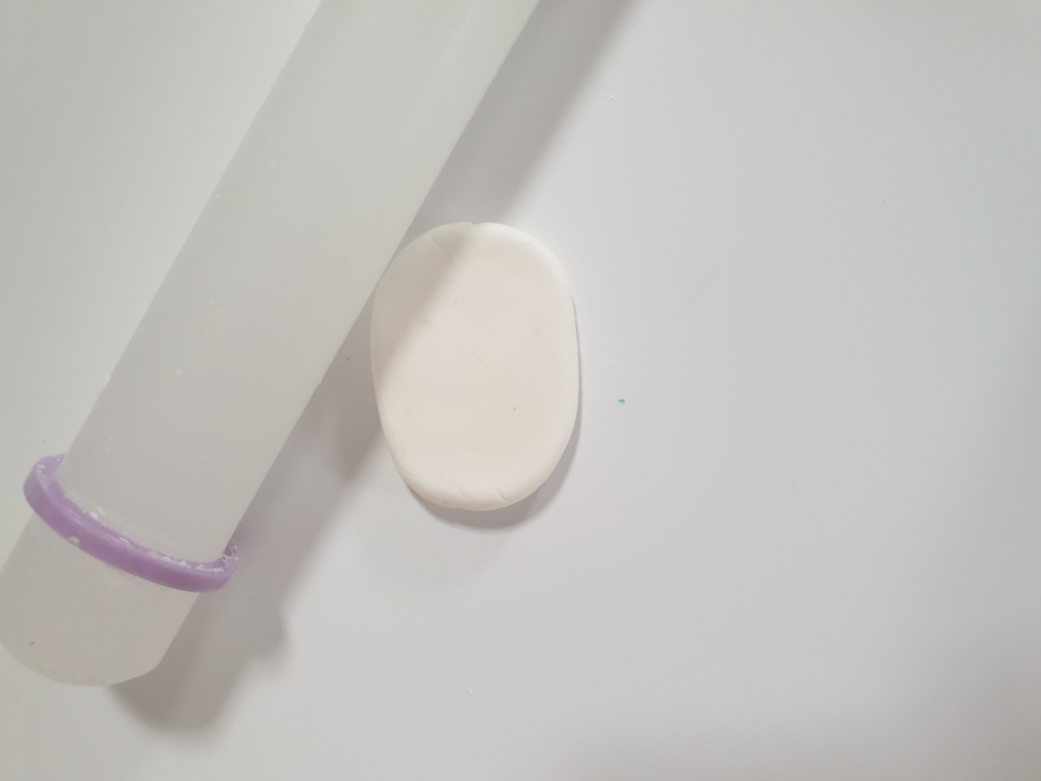 - Take a small piece of white fondant and roll it into a ball.