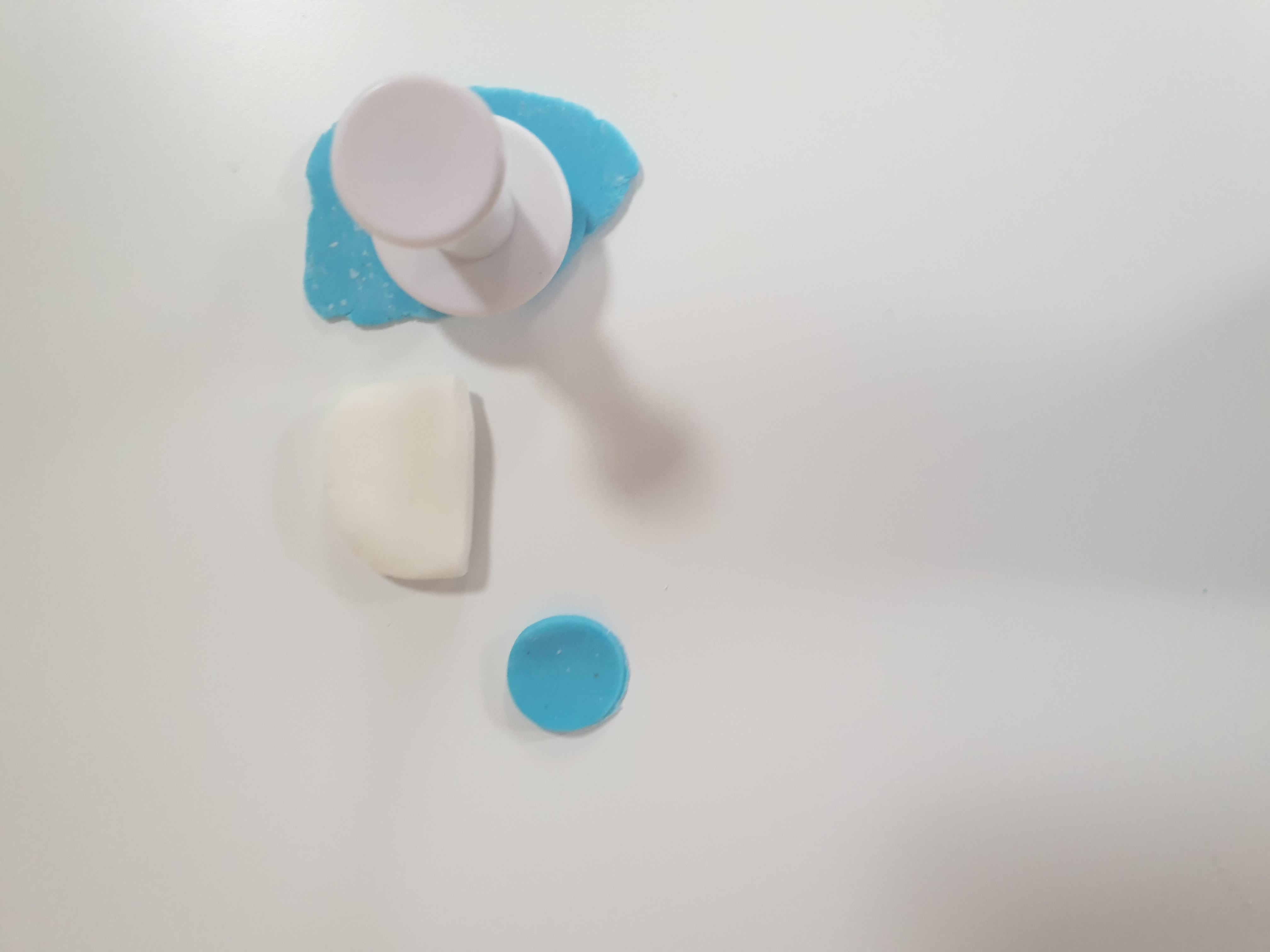 - Using your round fondant plunger, cut out a small blue circle.