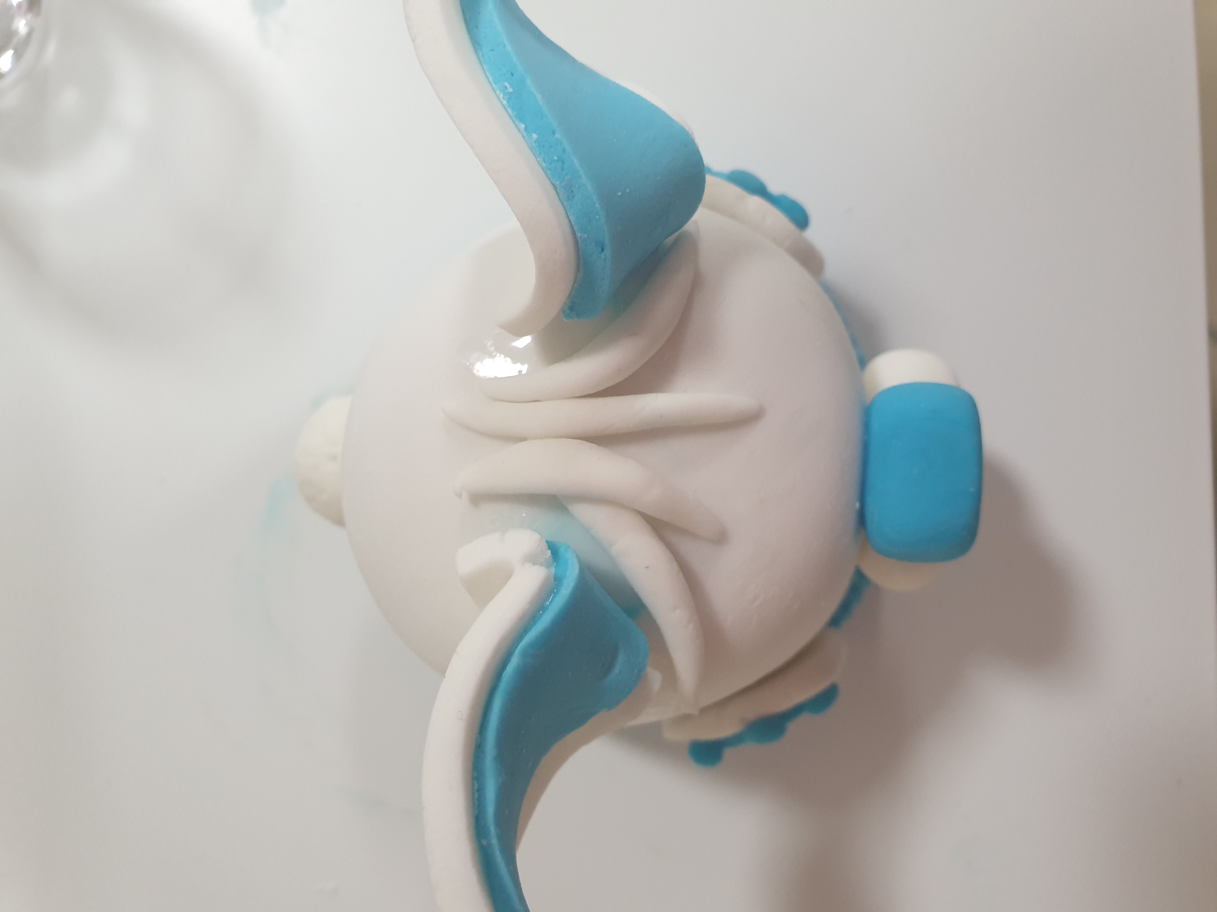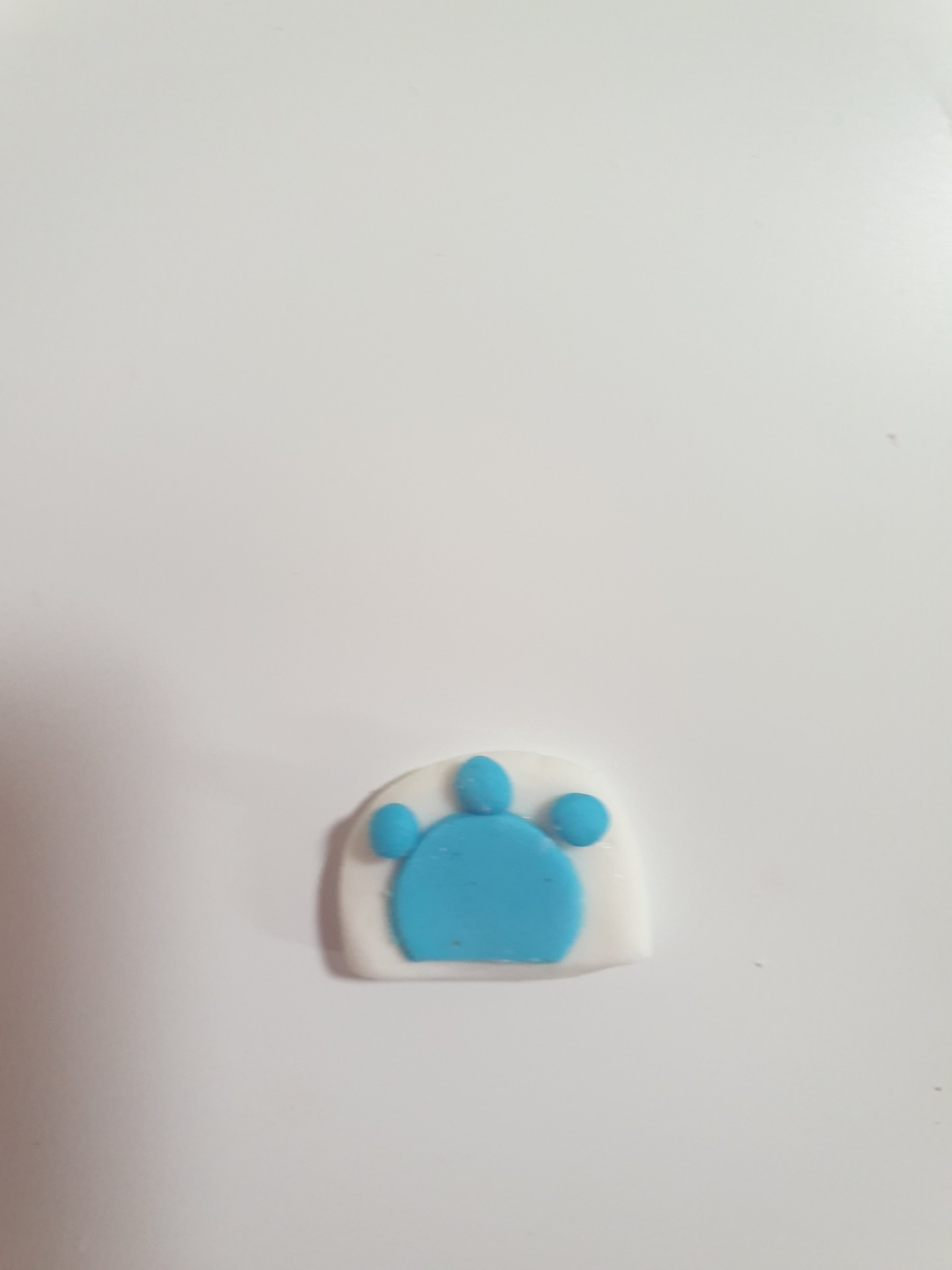 - Roll 6 small balls of blue fondant and secure them on the foot to create paws (see pictures).