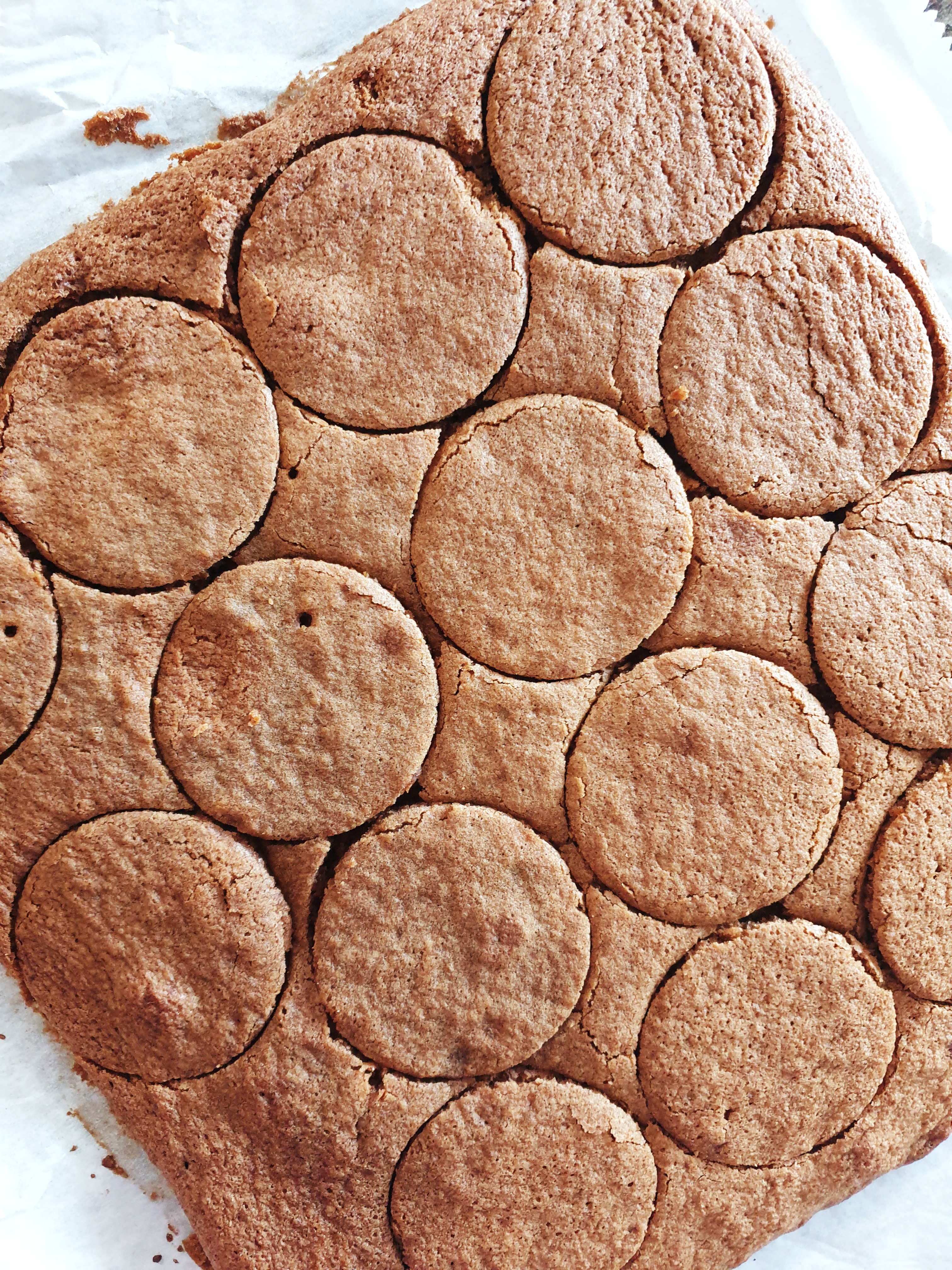 - Starting at the top left hand corner, continue to work you way down, and across the cake sheet, to complete all of your cut outs. Make sure not to leave big gaps between each cut, as you want to get as many cut outs as possible.