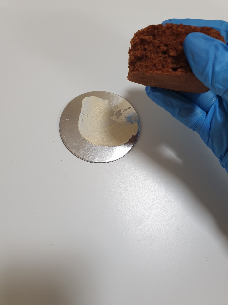 - Take a small cupcake board and pipe out a small amount of buttercream.