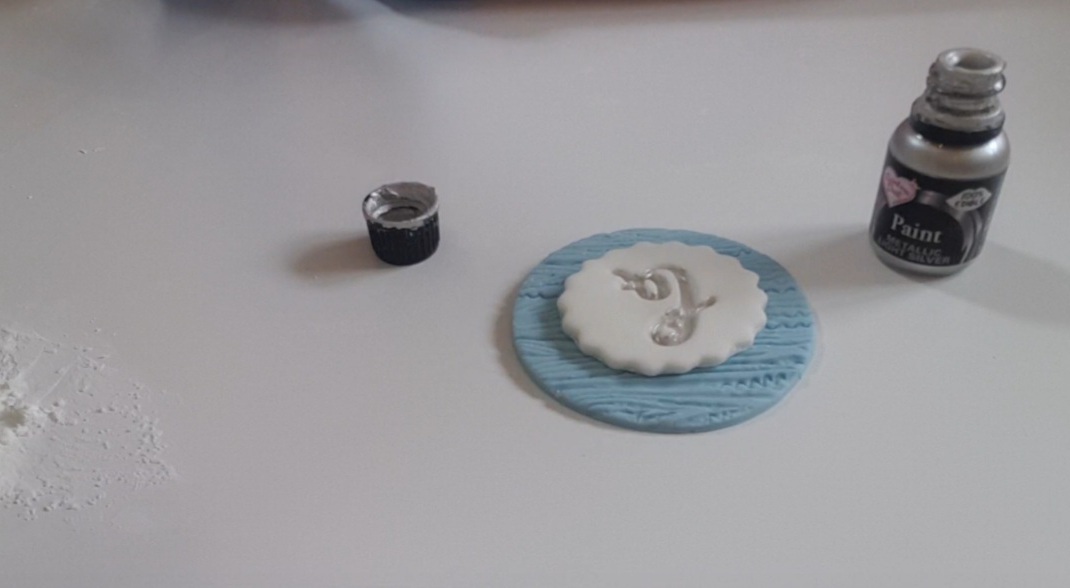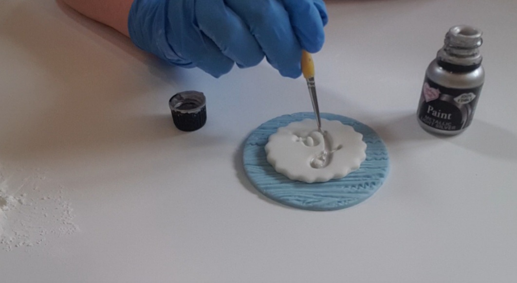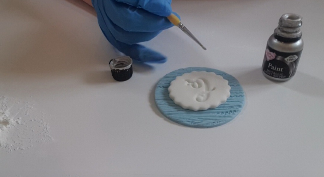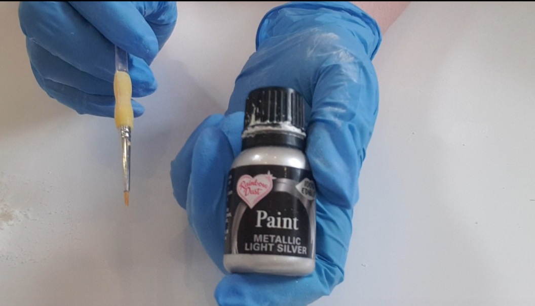 Take your bottle of silver edible paint and give it a good shake to mix up the colour.