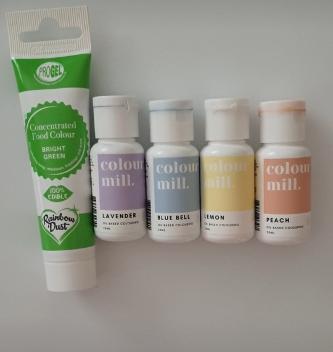 (I used ProGel, and Colour Mill food colouring for these particular toppers)