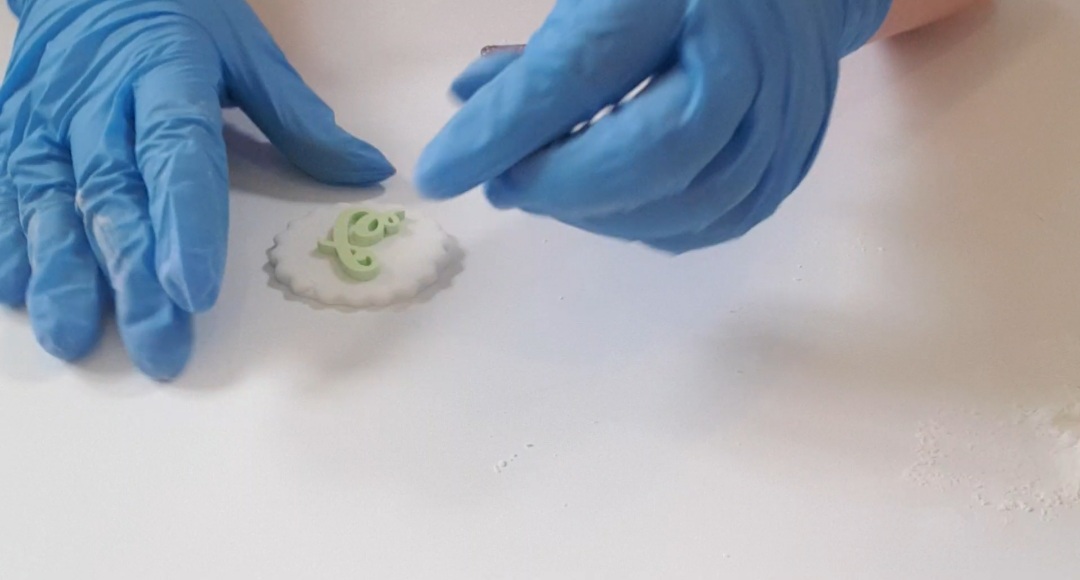 While you are waiting on the topper to dry slightly, you can make some decorations.